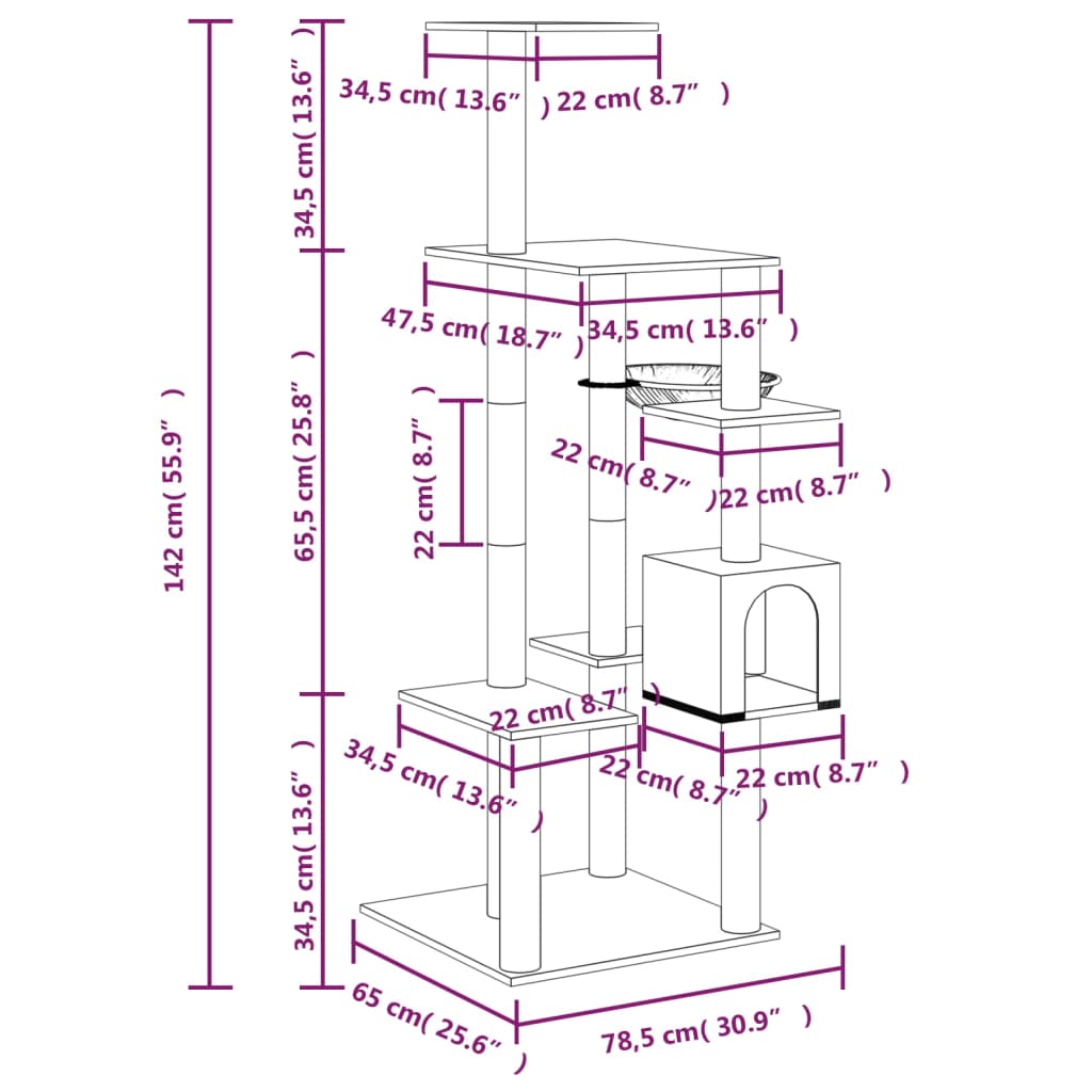 - Torre para gatos tudo-em-um: a torre arranhadora para gatos, com vários níveis, oferece ao seu gato um lugar divertido e compacto onde brincar, fazer exercício e uma casa quente para uma boa sesta. Possui uma casa, um cesto e plataformas.