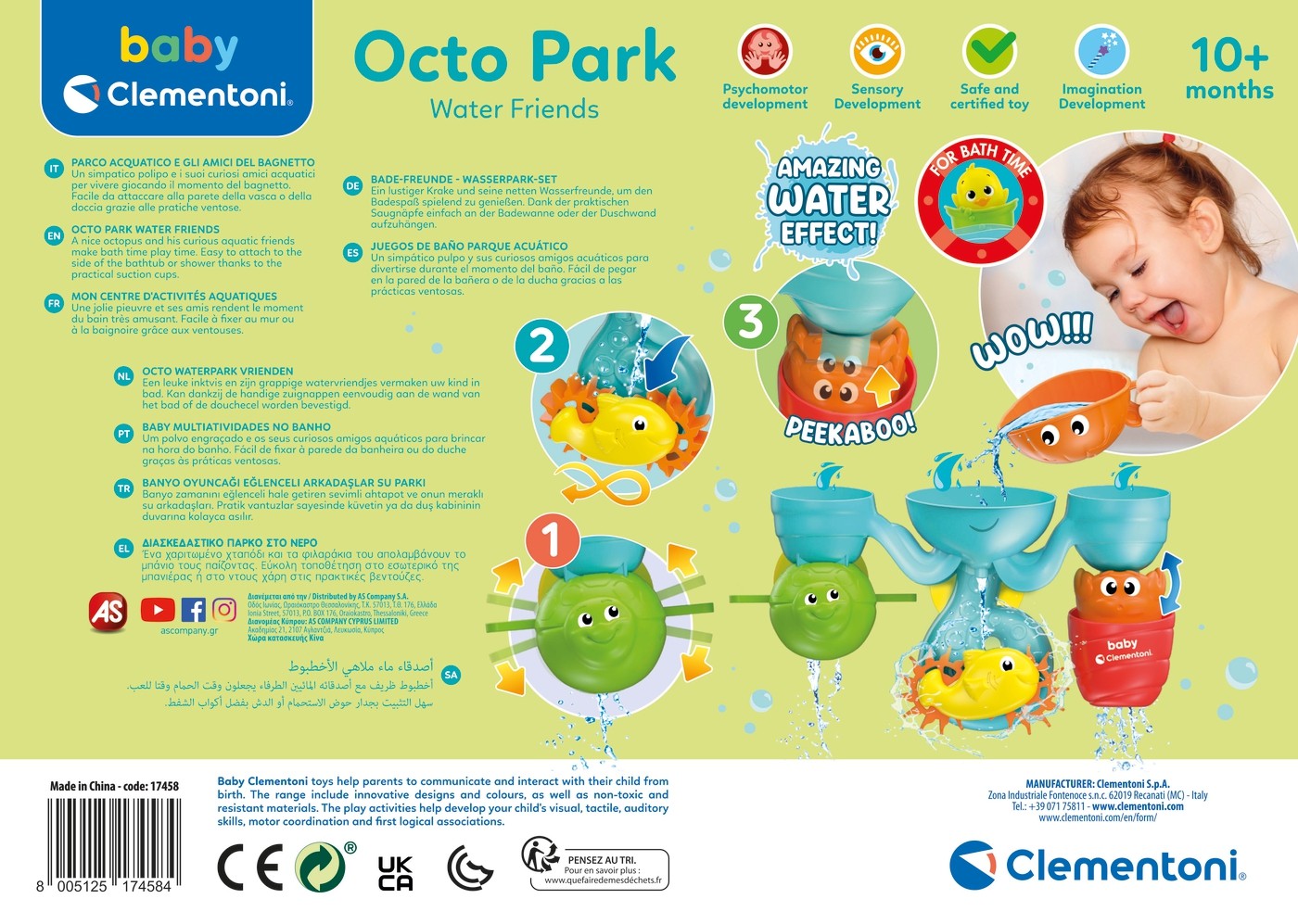 • La bandana del pulpo se transforma en una simpática taza con la que coger el agua y verterla para activar los diferentes juegos de agua que cada animalito acciona con el paso del agua.