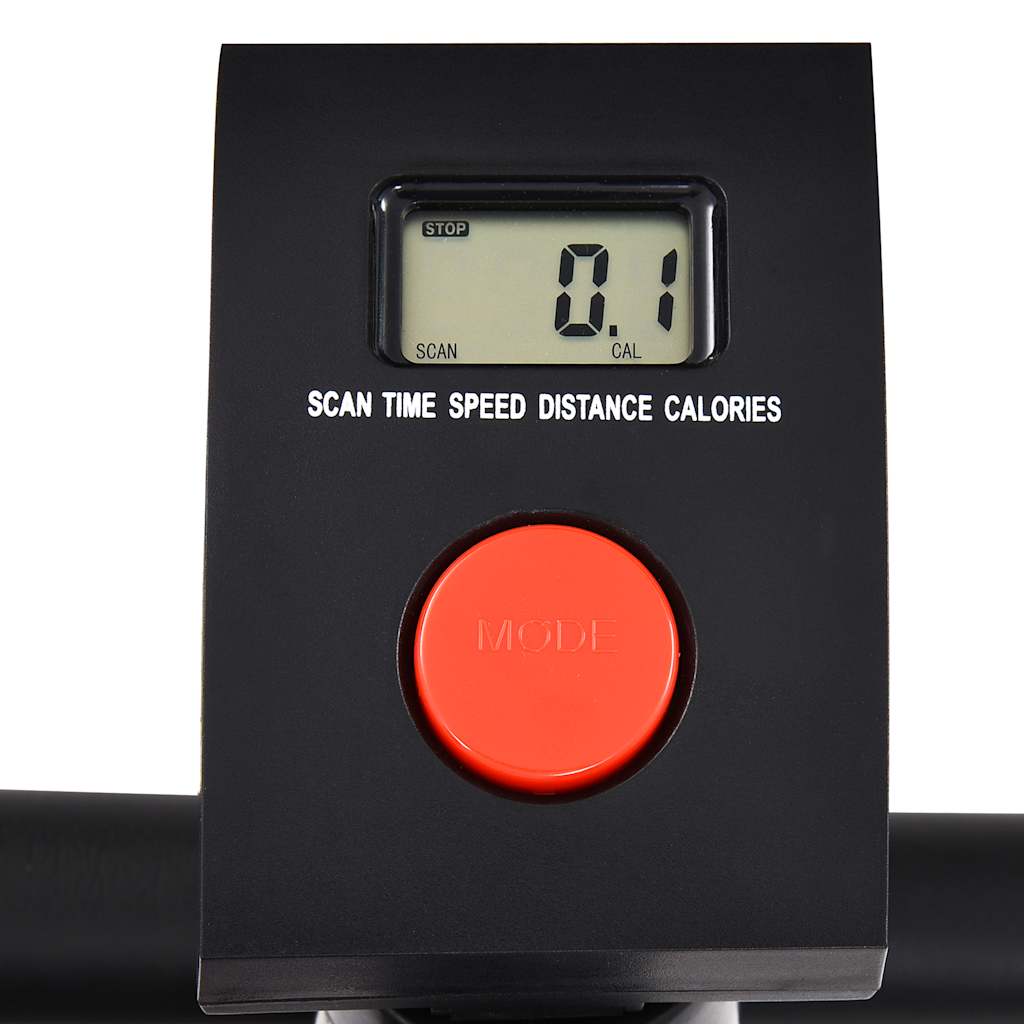 Pode acompanhar o seu desempenho no monitor LCD que mostra informações sobre o tempo decorrido, a velocidade atual, a distância e as calorias queimadas. A bicicleta de fitness possui um design ergonómico. O assento pode ser ajustado verticalmente para se adaptar à sua altura. Os pedais antiderrapantes garantem uma transferência ideal da potência dos seus pés para os pedais. As cintas dos pedais evitam que os pés escorreguem acidentalmente dos mesmos.