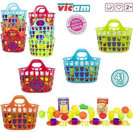 Cesta De Menaje 41 Pieza – Modelos surtidos. Edad minima recomendada 3a. Edad maxima recomendada 7a. Edad minima advertida 3a. No Montaje necesario. No Utiliza pilas. No Emite sonidos. No Tiene luces. Idiomas caja ES. Idioma producto ES. Material PLÁSTICO