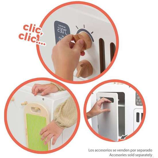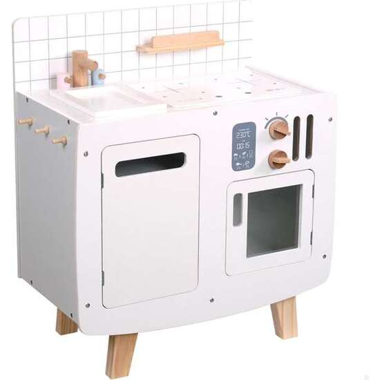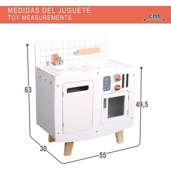 Cocina de Madera 55X30X63 Cm. Edad minima recomendada 3a. Sí Montaje necesario. Idiomas caja ES|EN. Idiomas instrucciones ES|EN. Idioma producto ES. Material MDF + WOOD