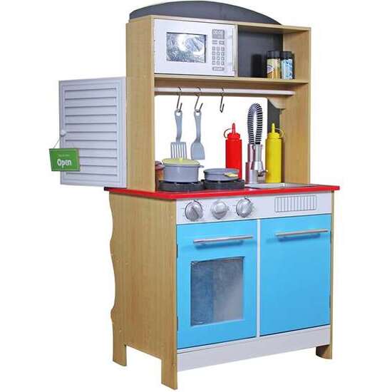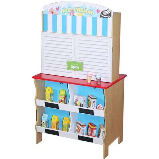 Cocina heladería de madera Woomax 60X40X109 cm. Edad minima recomendada 3a. Sí Utiliza pilas. Tipo pilas AAA. Sí Tiene luces. Idiomas caja ES. Idiomas instrucciones ES. Idioma producto ES. Material MADERA. Número pilas 4