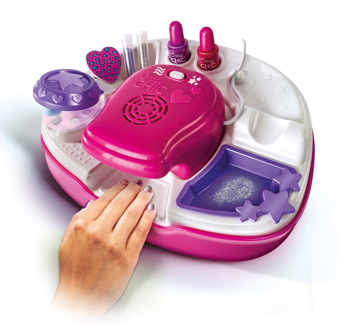Un increíble set para hacer Nail Art como auténticas profesionales, con un aplicador de esmalte, una pistola de glitter y un secador de uñas.