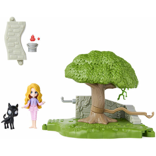 Tamaño: 22,86×13,34×22,86cm. Imagínate ayudando a Luna Lovegood a alimentar y cuidar de un bowtruckle y un bebé de thestral volador (incluidos). Este precioso escenario es perfecto para las aventuras de Wizarding World. Tu exclusiva muñeca coleccionable Luna Lovegood puede descubrir un bowtruckle y hacer que salga mágicamente del árbol moviéndose sobre el punto de activación. Articula la muñeca de Luna de 7,6 cm y empuja al bebé de thestral alrededor del árbol para que vuele. También puedes añadir a la historia el cubo y las manzanas. Incluye: 1 escenario, 1 figura, 3 accesorios, 1 conector, 1 guía de instrucciones.