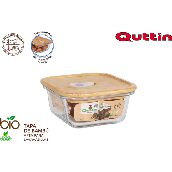 FIAMBRERA CUADRADA CON TAPA BAMBU 12X12CM QUTTIN