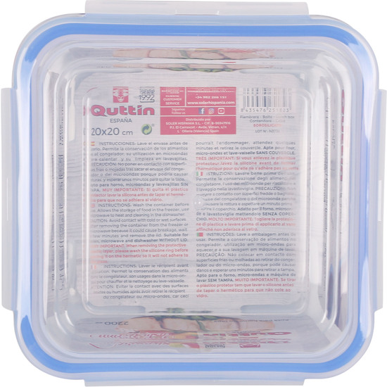 FIAMBRERA CUADRADA CON TAPA HERM 20X20CM QUTTIN