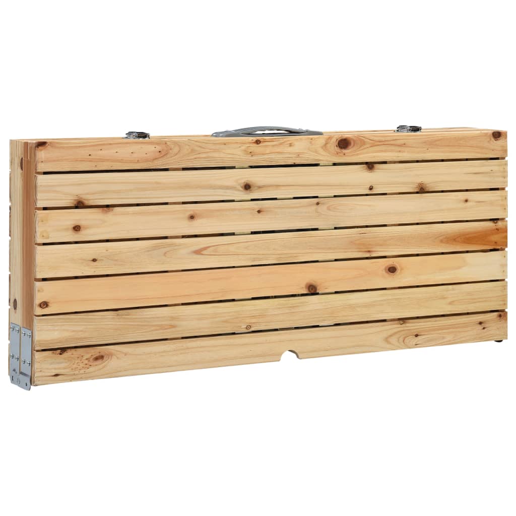 A superfície em madeira de abeto é um acréscimo ao seu charme natural, enquanto a estrutura de aço e o alumínio de qualidade garantem a sua durabilidade e robustez. Graças ao design dobrável, esta mesa com assentos de campismo pode ser dobrada num estojo, o que não só facilita o transporte, como pode ser guardada rapidamente quando não estiver a ser utilizada. O orifício de guarda-sol no tampo permite a instalação conveniente de um guarda-sol.