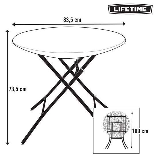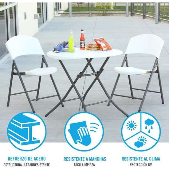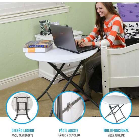 Mesa redonda plegable blanca Lifetime D83x73,5 cm. Material PLASTIC+STEEL