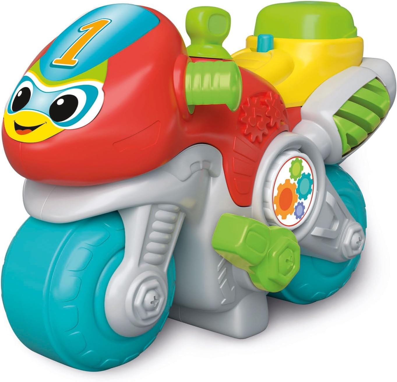 Una colorida moto que también es un divertido centro de actividades electrónico.