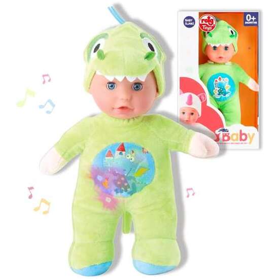 Muñeca Dinosaurio De Peluche 30 Cm. Edad minima recomendada Nacimiento. No Montaje necesario. Sí Utiliza pilas. Tipo pilas LR3. No Incluye pilas. Sí Emite sonidos. No Tiene luces. Contenido caja 24. Número pilas 2