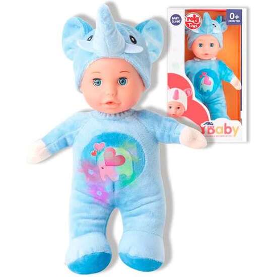 Muñeca Elefante De Peluche 30 Cm. Edad minima recomendada Nacimiento. No Montaje necesario. Sí Utiliza pilas. Tipo pilas LR3. No Incluye pilas. Sí Emite sonidos. No Tiene luces. Contenido caja 24. Número pilas 2