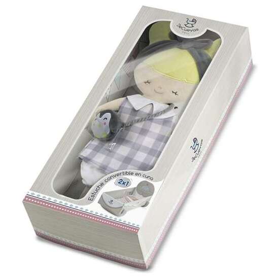 Muñeca Pipo Con Cuerpo Blando. Estuche convertible en cuna 36Cm. Edad minima recomendada 3A. No Montaje necesario. No Utiliza pilas. No Emite sonidos. No Tiene luces. Idiomas caja ES|EN. Idiomas instrucciones ES|EN|PT|RU