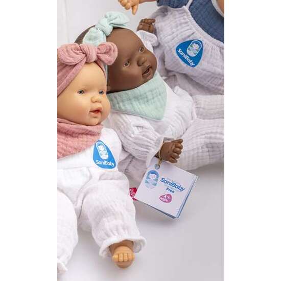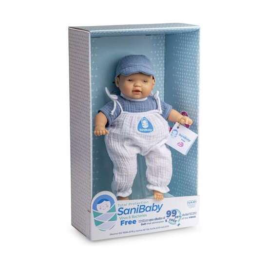Muñeca Sanibaby Antibacterias Azul 28 Cm. Edad minima recomendada 3A. No Montaje necesario. No Utiliza pilas. No Emite sonidos. No Tiene luces. Idiomas caja ES|EN|PT|FR. Idiomas instrucciones ES|EN|PT|FR