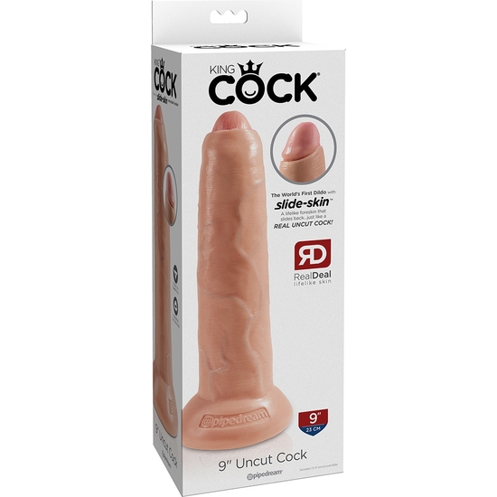 Este King Cock cumple tus fantasías con un prepucio móvil realista que se desliza hacia atrás, ¡como una pen real sin cortar!